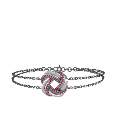 Rodolit garnet 18 ayar beyaz altın bilezik (40 cm gümüş rolo zincir)