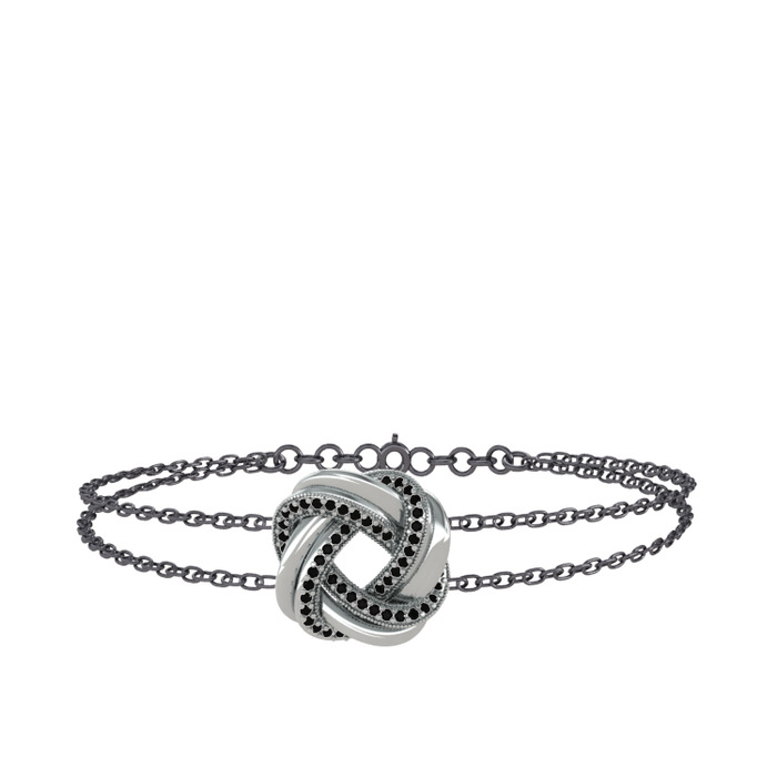 Siyah zirkon 14 ayar beyaz altın bilezik (40 cm gümüş rolo zincir)