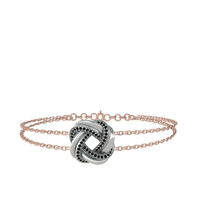 Siyah zirkon 14 ayar beyaz altın bilezik (40 cm rose altın rolo zincir)