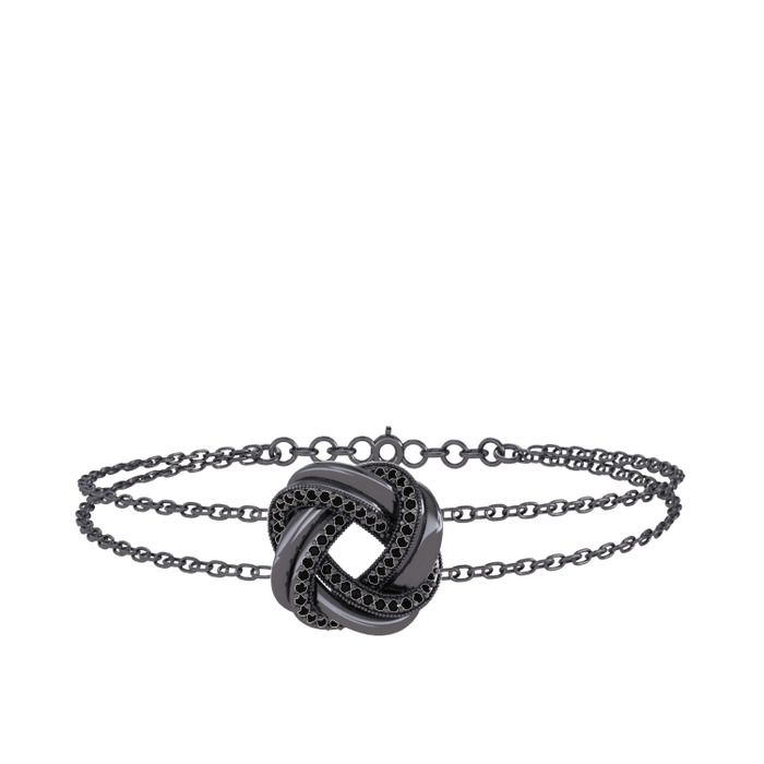 Siyah zirkon 925 ayar siyah rodyum kaplama gümüş bilezik (40 cm gümüş rolo zincir)