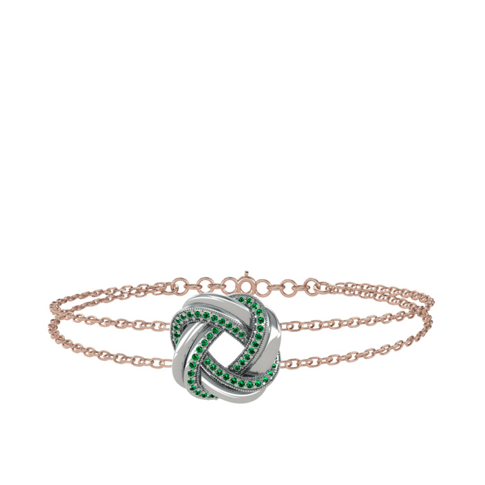 Yeşil kuvars 8 ayar beyaz altın bilezik (40 cm rose altın rolo zincir)