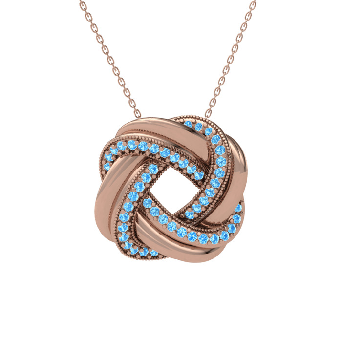 Akuamarin 8 ayar rose altın kolye (40 cm rose altın rolo zincir)