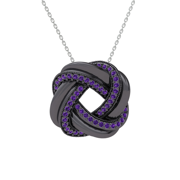 Ametist 925 ayar siyah rodyum kaplama gümüş kolye (40 cm beyaz altın rolo zincir)