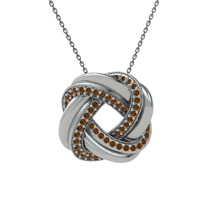 Dumanlı kuvars 18 ayar beyaz altın kolye (40 cm gümüş rolo zincir)