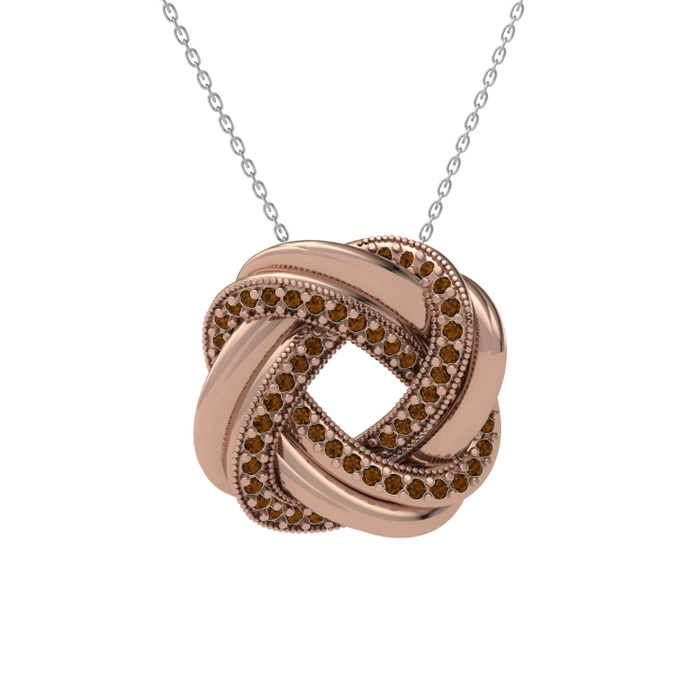 Dumanlı kuvars 8 ayar rose altın kolye (40 cm beyaz altın rolo zincir)