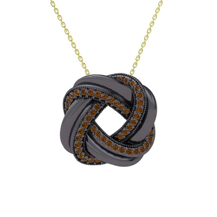 Dumanlı kuvars 925 ayar siyah rodyum kaplama gümüş kolye (40 cm altın rolo zincir)