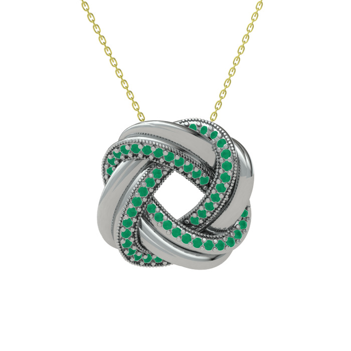 Kök zümrüt 8 ayar beyaz altın kolye (40 cm altın rolo zincir)