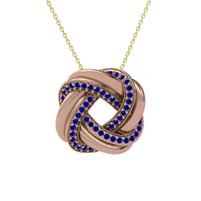 Lab safir 925 ayar rose altın kaplama gümüş kolye (40 cm altın rolo zincir)