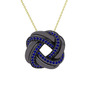 Lab safir 925 ayar siyah rodyum kaplama gümüş kolye (40 cm altın rolo zincir)