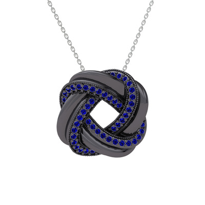 Lab safir 925 ayar siyah rodyum kaplama gümüş kolye (40 cm beyaz altın rolo zincir)
