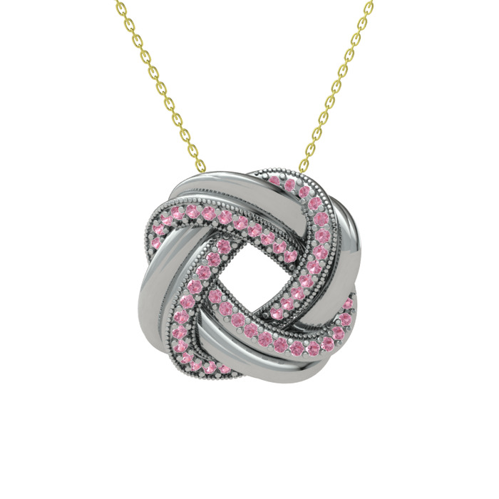 Pembe kuvars 14 ayar beyaz altın kolye (40 cm altın rolo zincir)