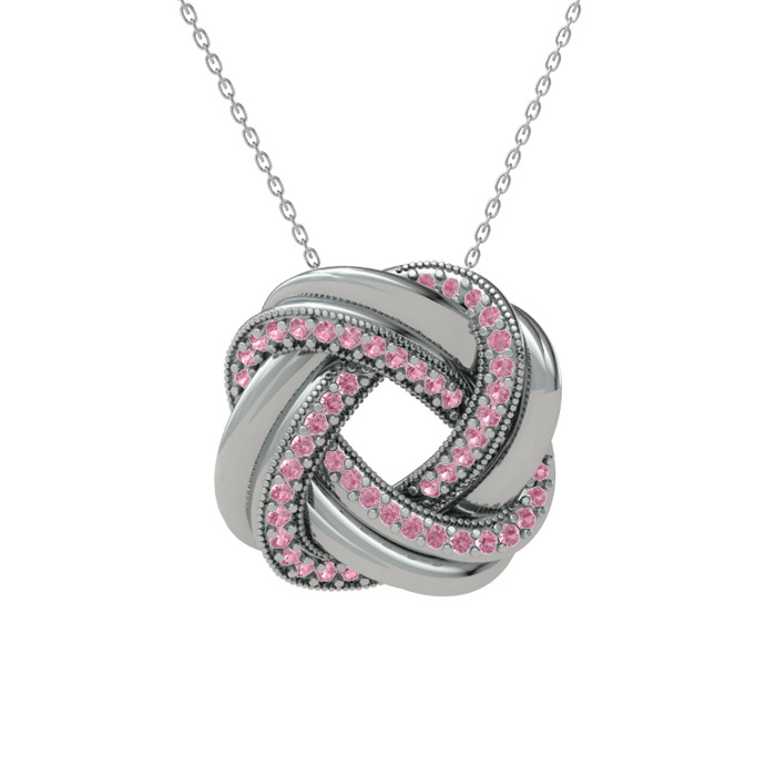 Pembe kuvars 14 ayar beyaz altın kolye (40 cm beyaz altın rolo zincir)
