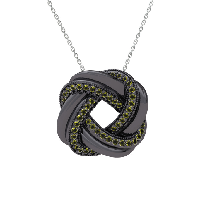 Peridot 925 ayar siyah rodyum kaplama gümüş kolye (40 cm beyaz altın rolo zincir)