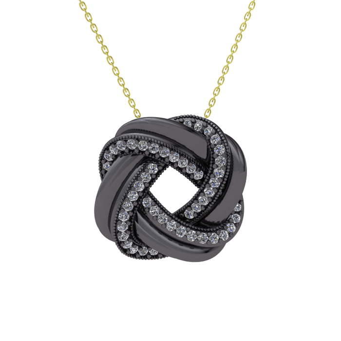 Pırlanta 925 ayar siyah rodyum kaplama gümüş kolye (0.539 karat, 40 cm altın rolo zincir)
