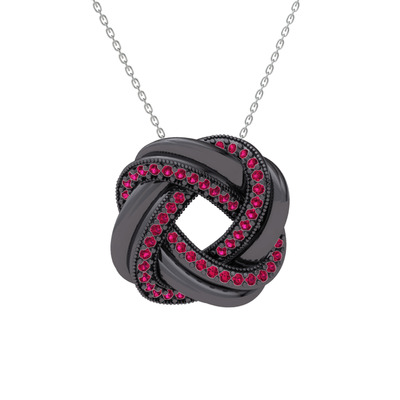 Rodolit garnet 925 ayar siyah rodyum kaplama gümüş kolye (40 cm beyaz altın rolo zincir)