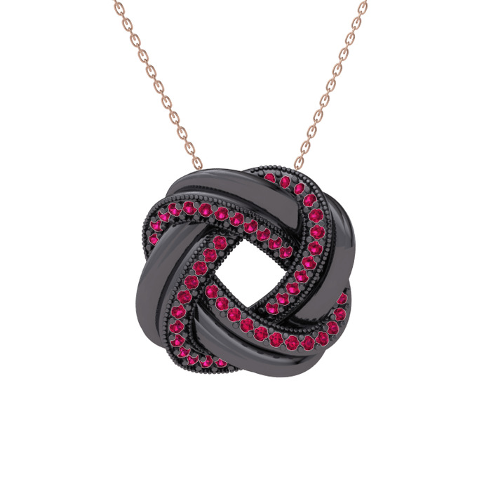 Rodolit garnet 925 ayar siyah rodyum kaplama gümüş kolye (40 cm rose altın rolo zincir)