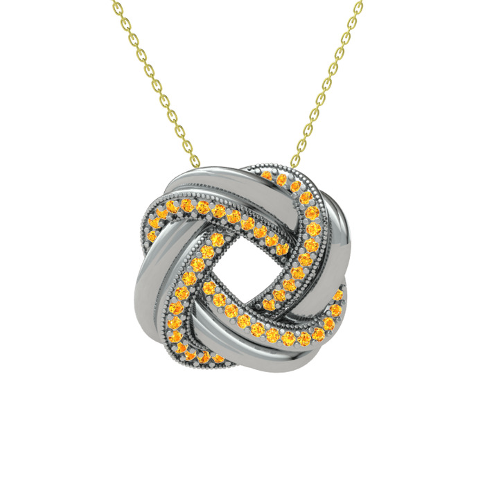 Sitrin 14 ayar beyaz altın kolye (40 cm altın rolo zincir)