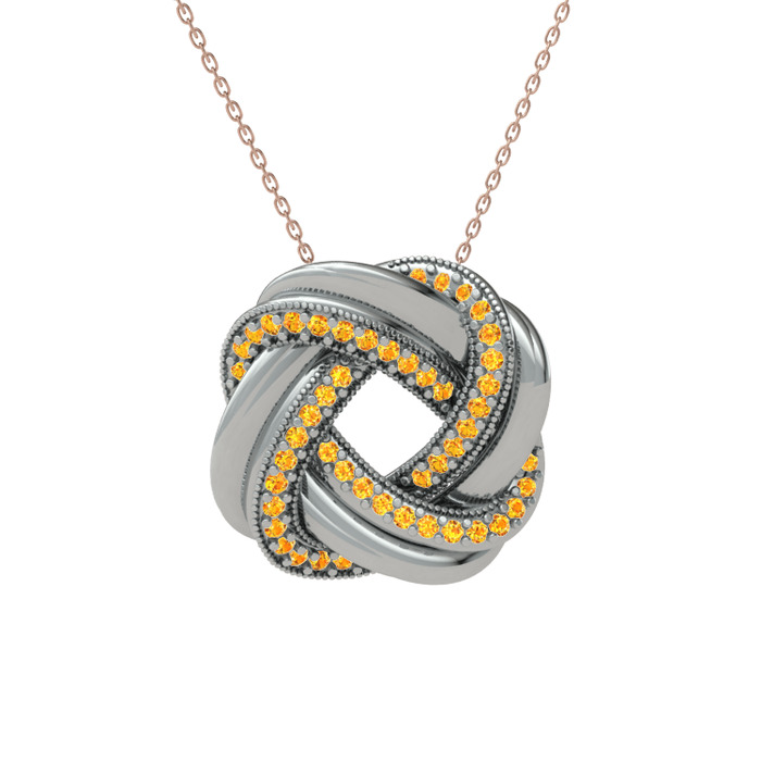 Sitrin 925 ayar gümüş kolye (40 cm rose altın rolo zincir)