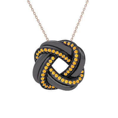 Sitrin 925 ayar siyah rodyum kaplama gümüş kolye (40 cm rose altın rolo zincir)