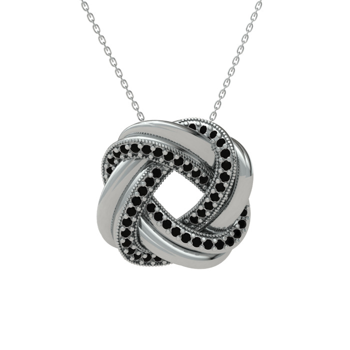 Siyah zirkon 14 ayar beyaz altın kolye (40 cm beyaz altın rolo zincir)
