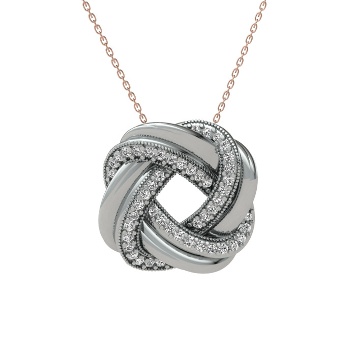 Swarovski 18 ayar beyaz altın kolye (40 cm rose altın rolo zincir)