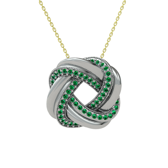 Yeşil kuvars 8 ayar beyaz altın kolye (40 cm altın rolo zincir)