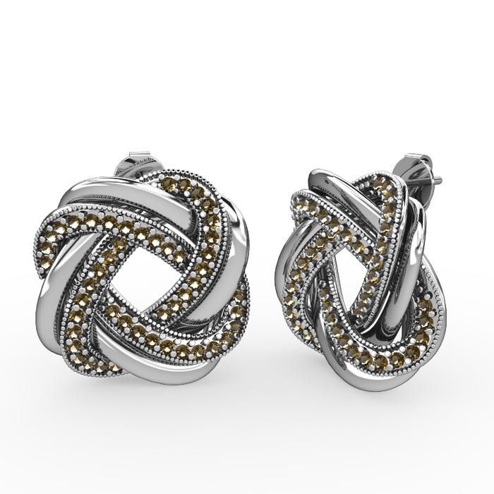 Dumanlı kuvars 14 ayar beyaz altın küpe
