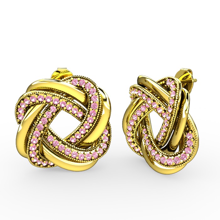 Pembe kuvars 925 ayar altın kaplama gümüş küpe
