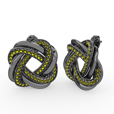 Peridot 925 ayar siyah rodyum kaplama gümüş küpe