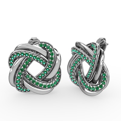 Yeşil kuvars 18 ayar beyaz altın küpe