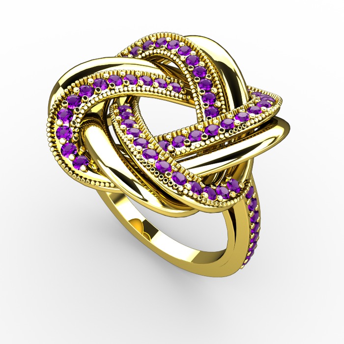 Ametist 925 ayar altın kaplama gümüş yüzük