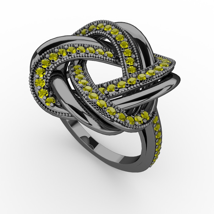 Peridot 925 ayar siyah rodyum kaplama gümüş yüzük