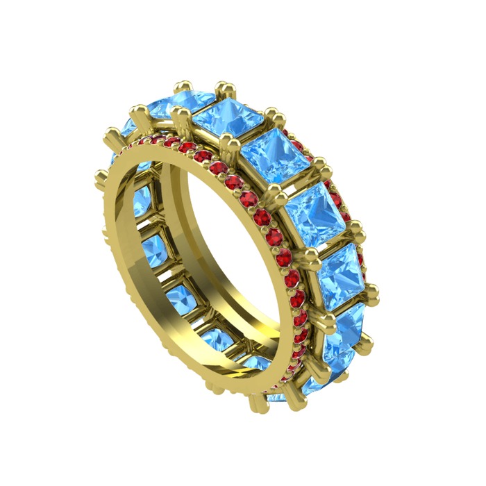 Akuamarin ve garnet 925 ayar altın kaplama gümüş yüzük