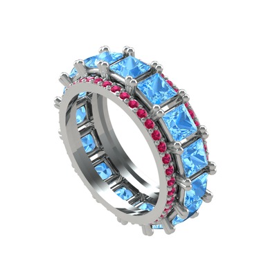 Akuamarin ve rodolit garnet 8 ayar beyaz altın yüzük