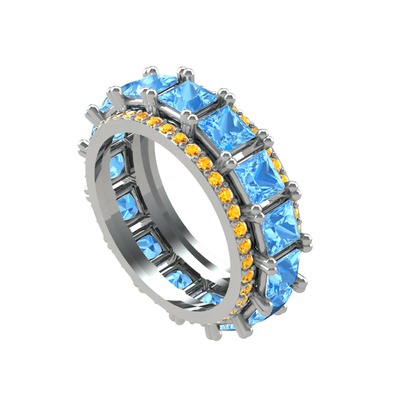 Akuamarin ve sitrin 14 ayar beyaz altın yüzük