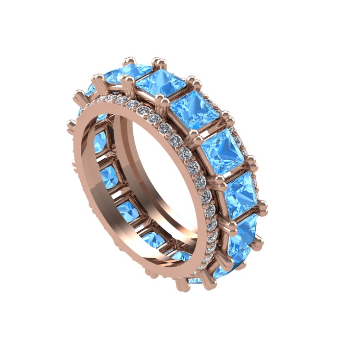 Akuamarin ve swarovski 8 ayar rose altın yüzük