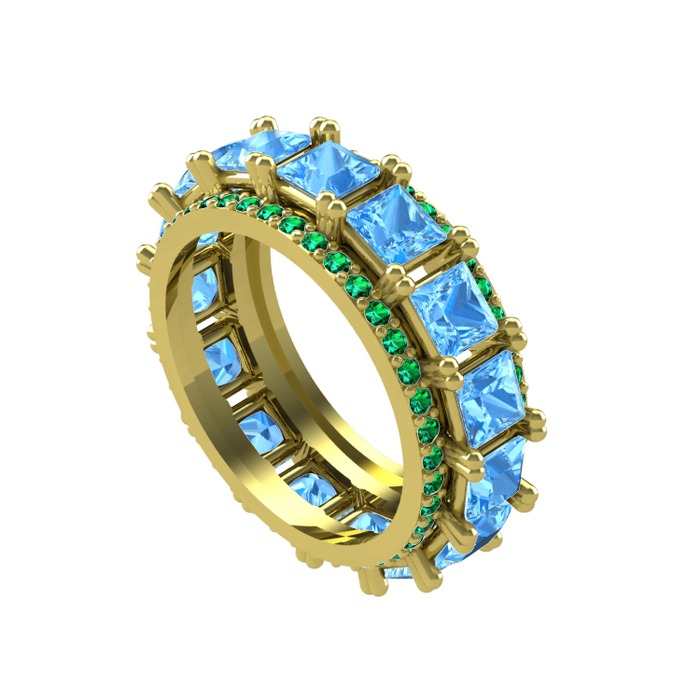 Akuamarin ve yeşil kuvars 8 ayar altın yüzük