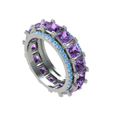 Ametist ve akuamarin 925 ayar gümüş yüzük