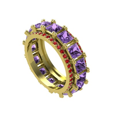 Ametist ve garnet 925 ayar altın kaplama gümüş yüzük