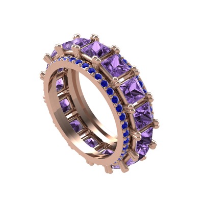 Ametist ve lab safir 14 ayar rose altın yüzük