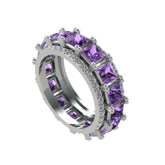 Ametist ve pırlanta 925 ayar gümüş yüzük (0.88 karat)