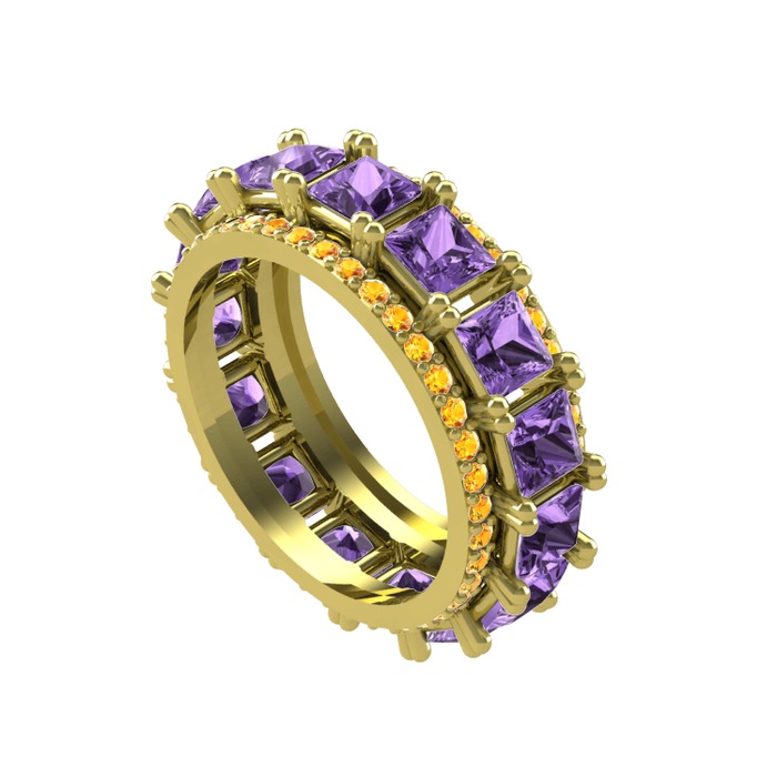 Ametist ve sitrin 8 ayar altın yüzük