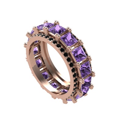 Ametist ve siyah zirkon 925 ayar rose altın kaplama gümüş yüzük