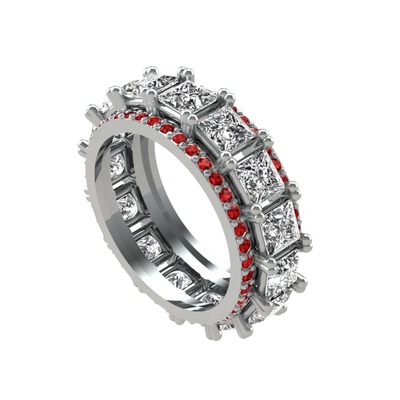 Beyaz zirkon ve garnet 14 ayar beyaz altın yüzük