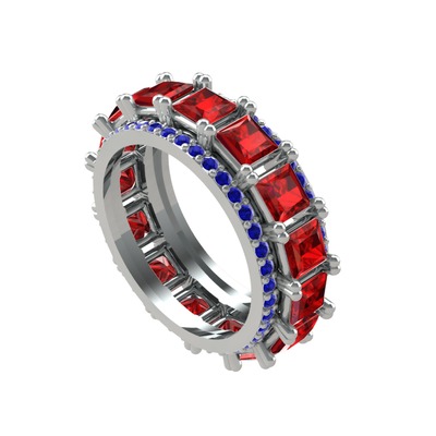 Garnet ve lab safir 14 ayar beyaz altın yüzük