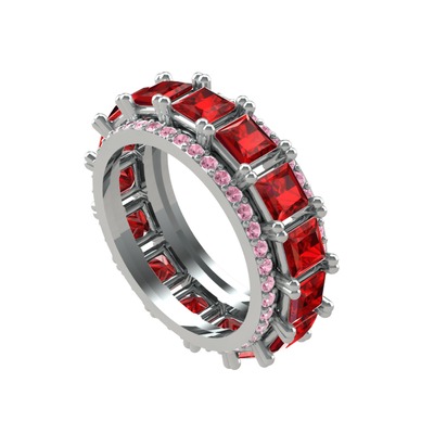 Garnet ve pembe kuvars 14 ayar beyaz altın yüzük