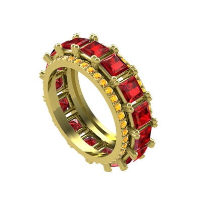 Garnet ve sitrin 925 ayar altın kaplama gümüş yüzük