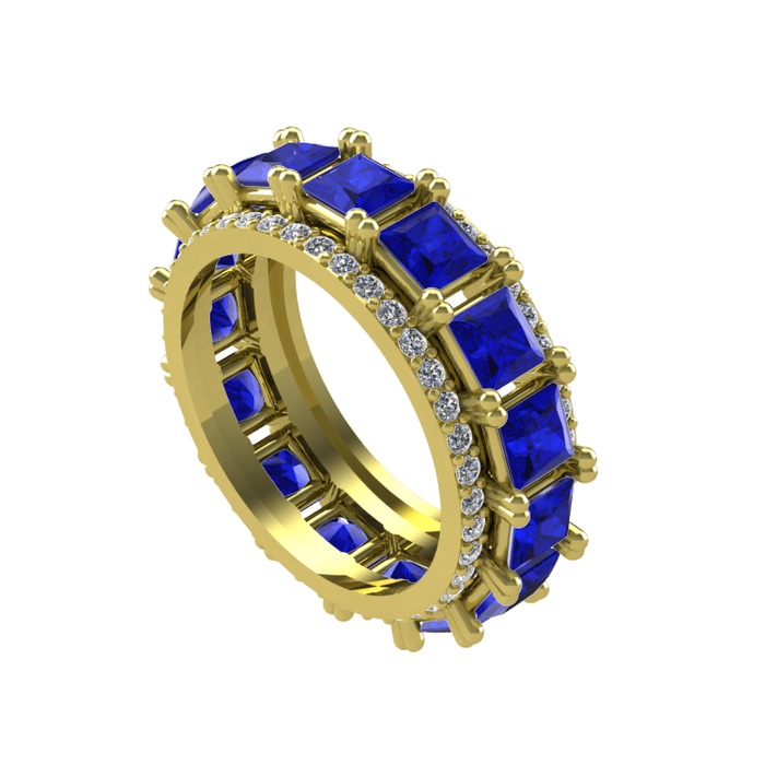 Lab safir ve beyaz zirkon 14 ayar altın yüzük