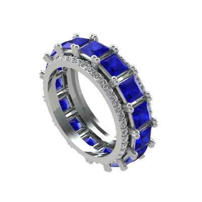 Lab safir ve beyaz zirkon 8 ayar beyaz altın yüzük