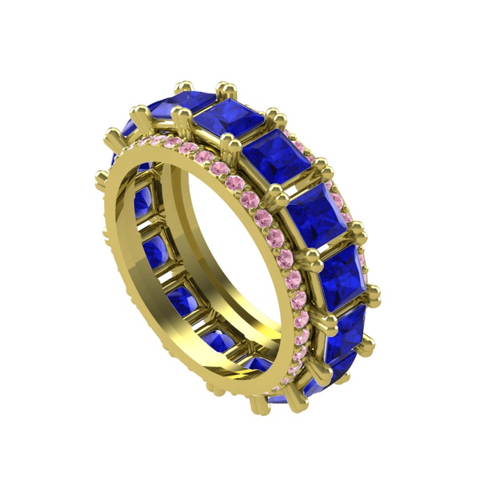 Lab safir ve pembe kuvars 925 ayar altın kaplama gümüş yüzük